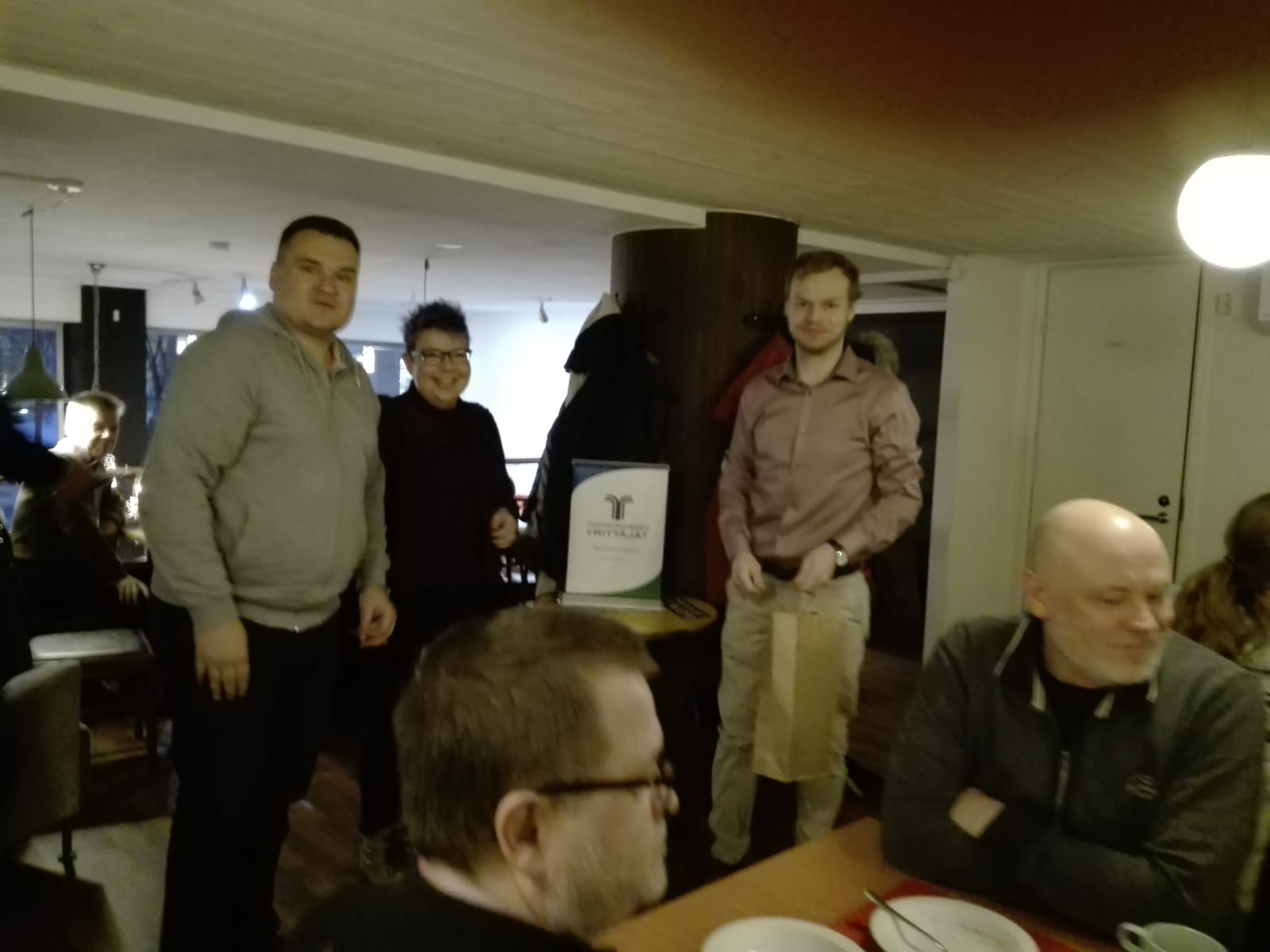 SAWUcafessa vietettiin tänään torstaina 19. päivä vuosittaista joulupuuroa. Jäseniä oli kokoontunut paikalle runsaasti ja tarinaa ja kuulumisten vaihtoakin riitti. Onnenmantelin nappasi itselleen Tanu Toikka Lymed Oy:sta ja suorituksesta palkittiin kuten tapana on Janin ja Sarin toimesta.