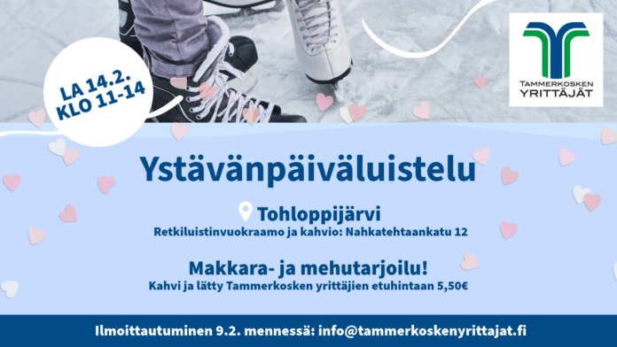 Tervetuloa koko perheen maksuttomaan luistelutapahtumaan Tohloppijärvelle ystävänpäivänä 14.2 klo 11–14!