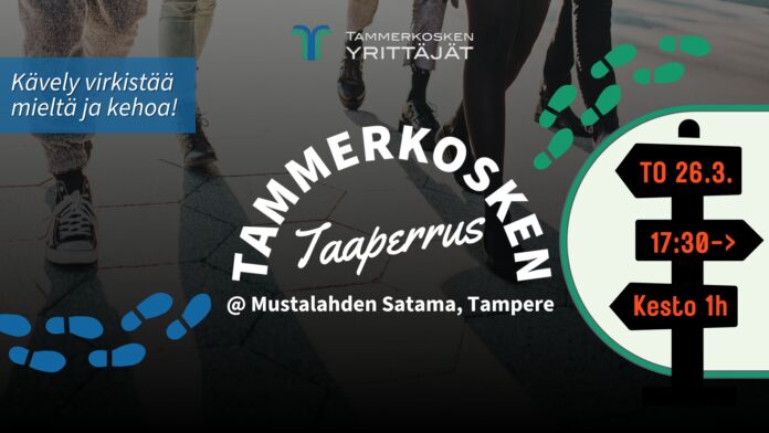 Tule mukaan yrittäjien rennolle kävelylle 26.3. klo. 17:30 – sauvojen kanssa tai ilman! Vauhti on maltillinen, joten mukaan voi lähteä ihan kuka vain. Lähdetään liikkeelle Mustalahden satamasta, kierretään Tammerkosken...